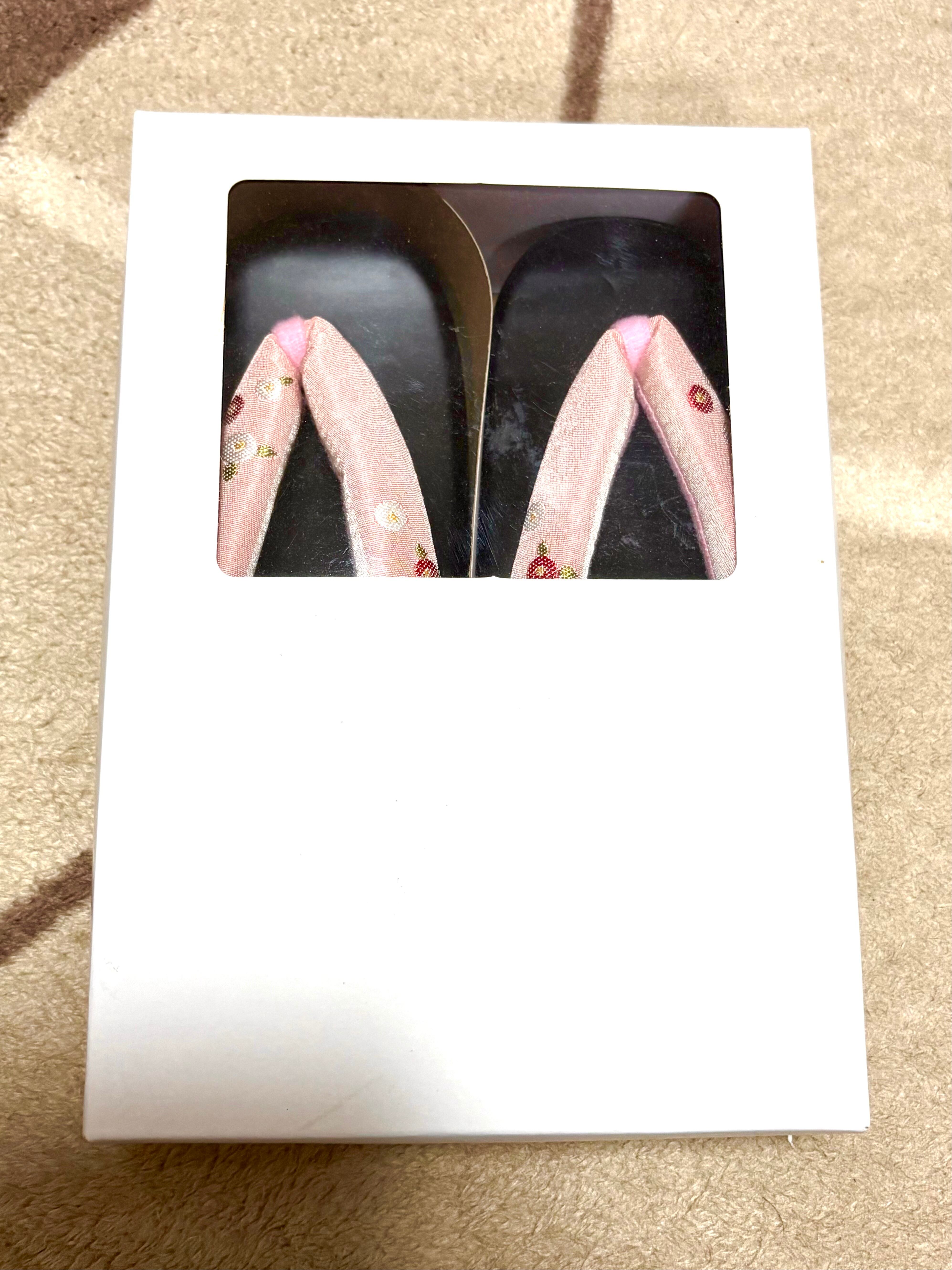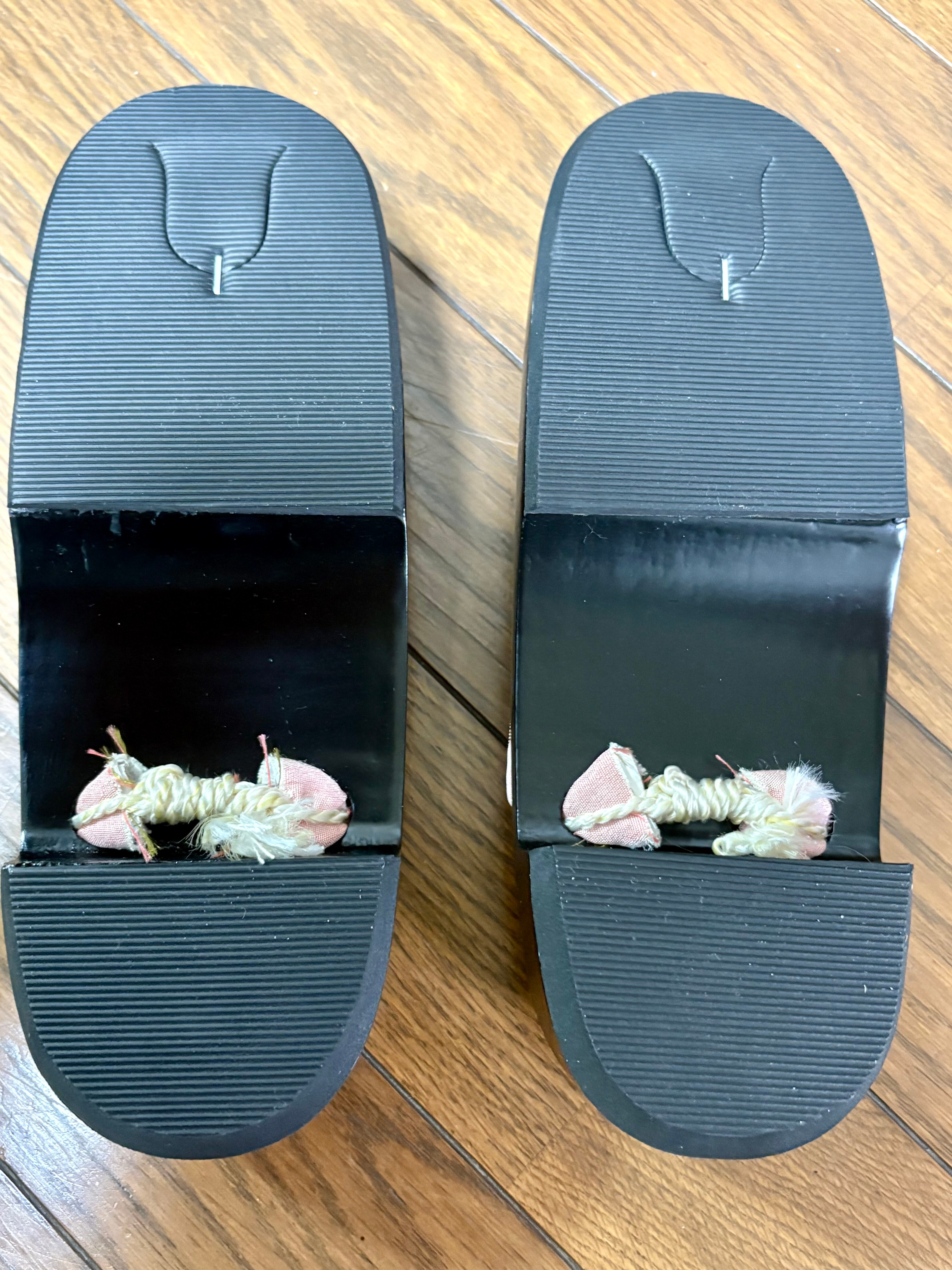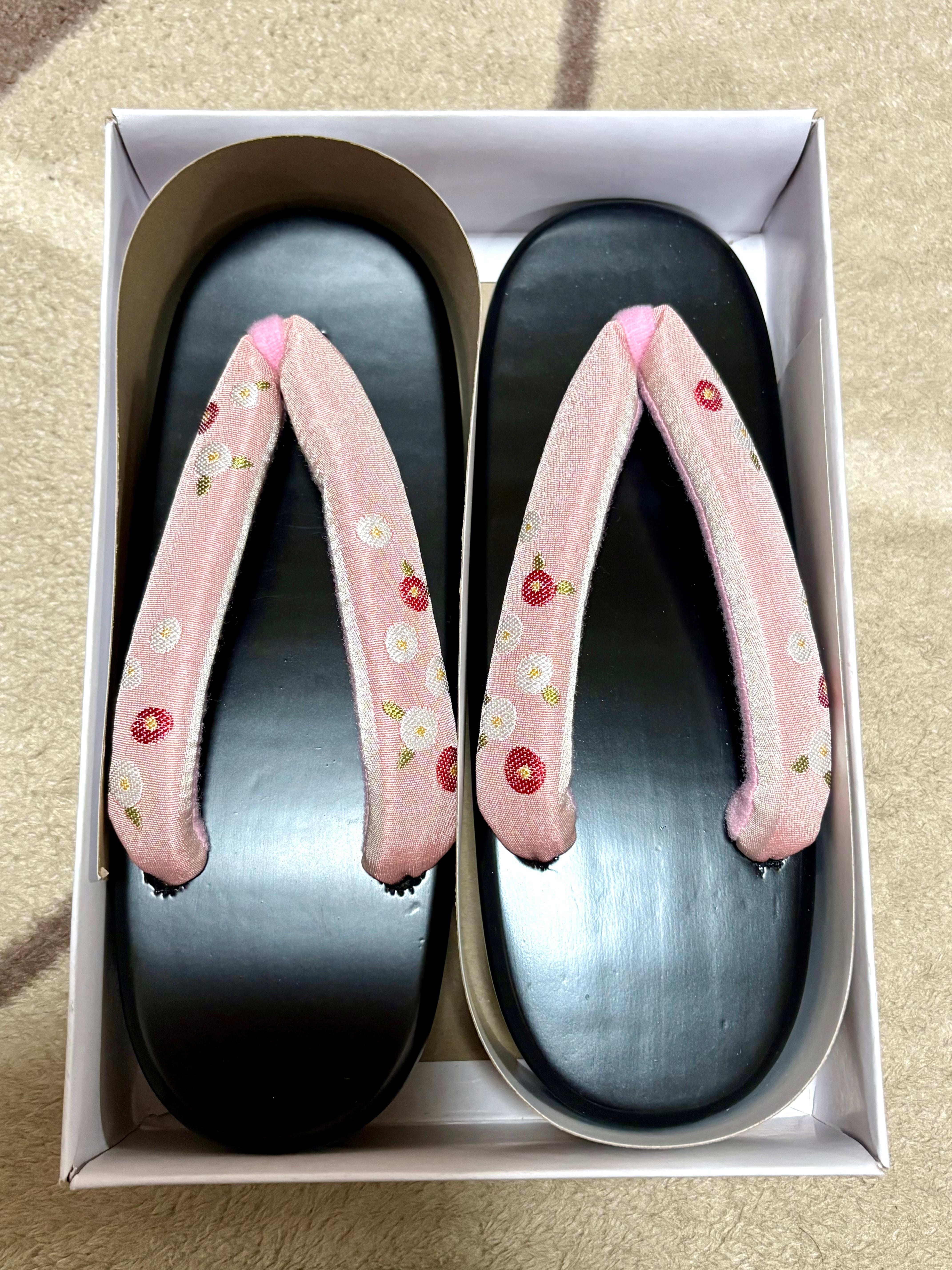 色合いはピンクの鼻緒に艶消しの黒塗りです